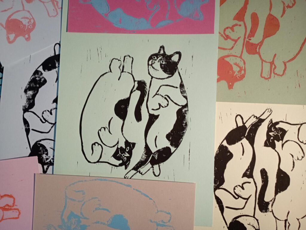 Porté’e par mes copaines chats et des humain.es supers chouettes, je trouve l’élan de faire de l’illustration, du graphisme et de faire de la reliure.