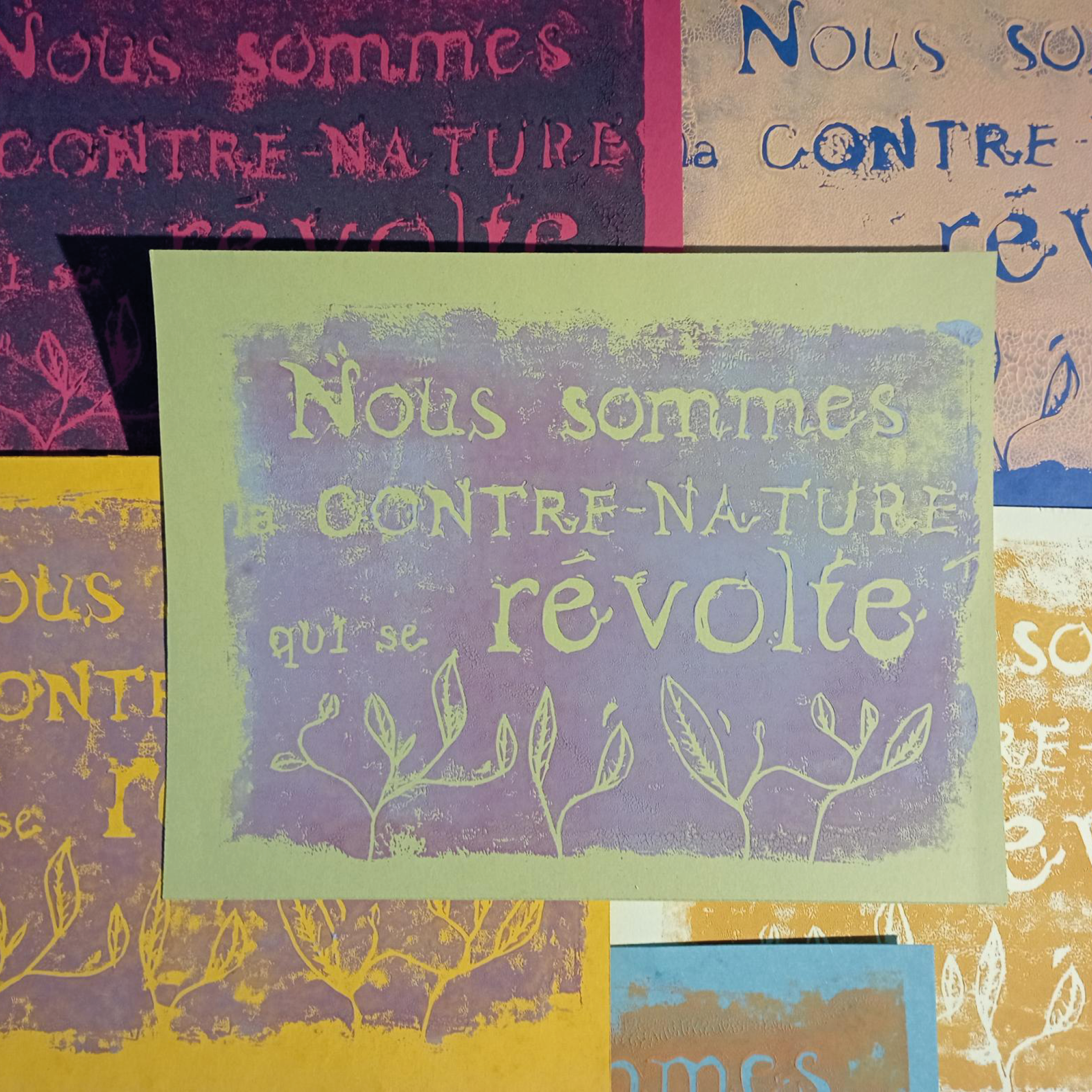 Linogravure « Nous sommes la contre-nature qui se révolte «